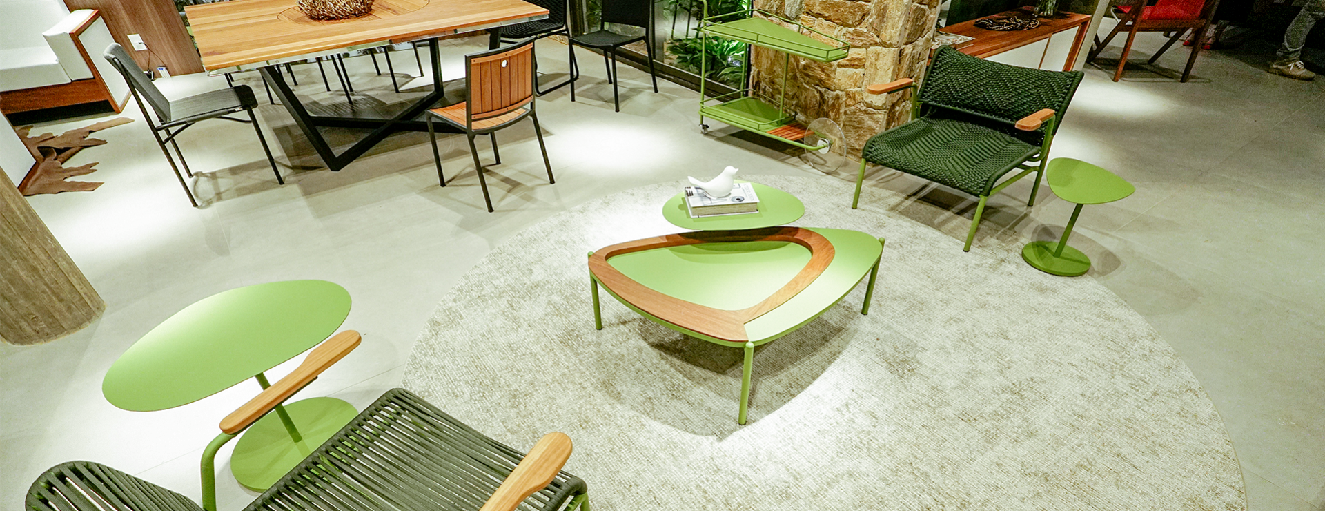 Palmeraie é um luxuoso bairro em Marraquexe, Marrocos, famoso por seus resorts e paisagens exuberantes. A linha inspirada em Palmeraie incorpora elementos do design marroquino, com predominância no alumínio e madeira Cumaru esculpida à mão, que refletem a rica tradição artesanal da região. Apresenta linhas retas e modernas, trazendo uma estética refinada. Cada peça é única, com detalhes e padrões que celebram a rica herança artística e cultural de Palmeraie em Marrocos. A linha é uma expressão de elegância e autenticidade inspirada na beleza exuberante e na tradição artística de Marraquexe.